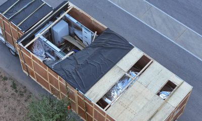 The vehicles were covered, but one could easily recognize the Cybercab’s sleek lines and compact size.