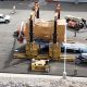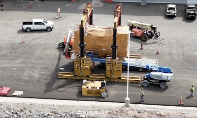 The massive machine was transported to the Semi factory using two diesel trucks and a triple trailer.