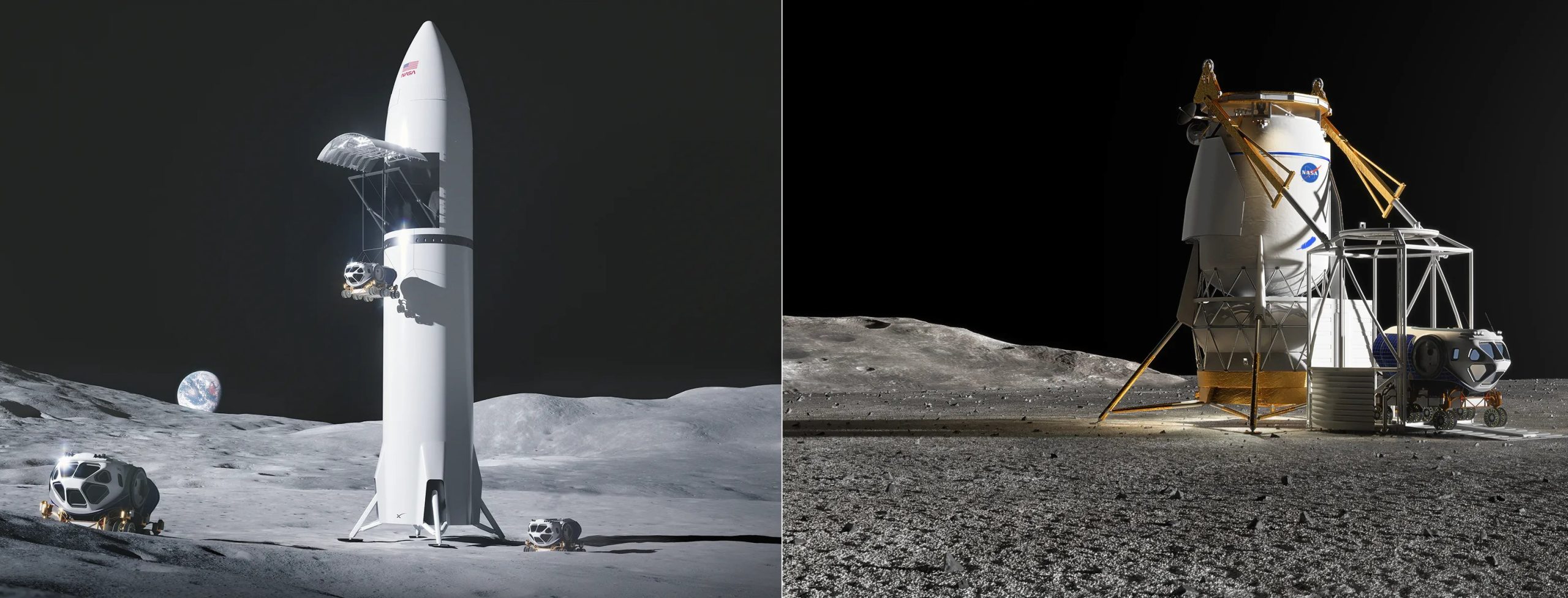 NASA shared updated renders of the SpaceX and Blue Origin cargo landers that will bring rovers and other equipment to the Moon.