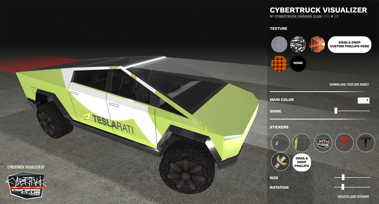 Visit the Cybertruck Owners Club’s Cybertruck Visualizer here.