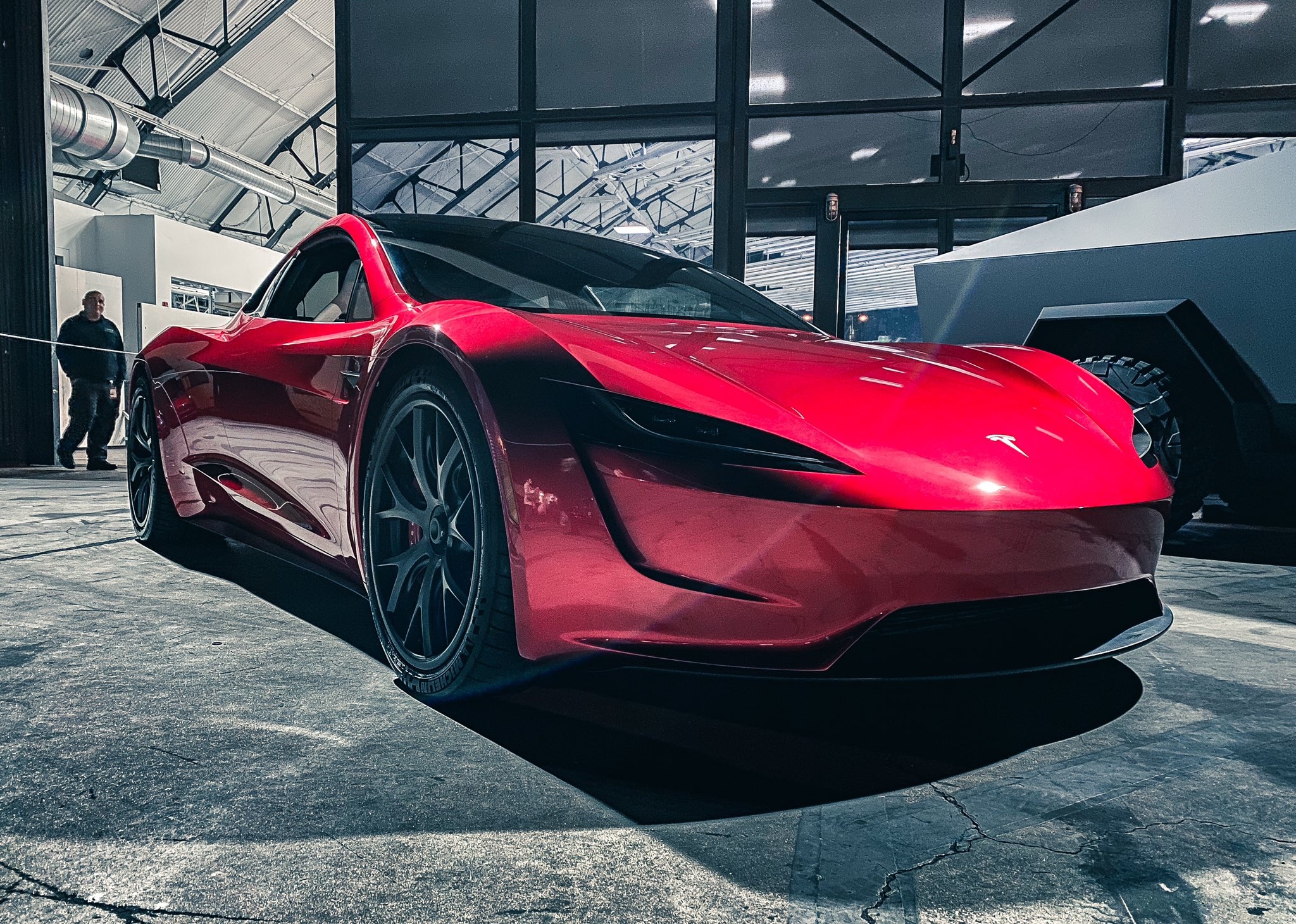 - Red Tesla Roadster 2020 at Hawthorne Design Center, 2019 Tesla Holiday Party (Credit: Nan Lin/Facebook)
