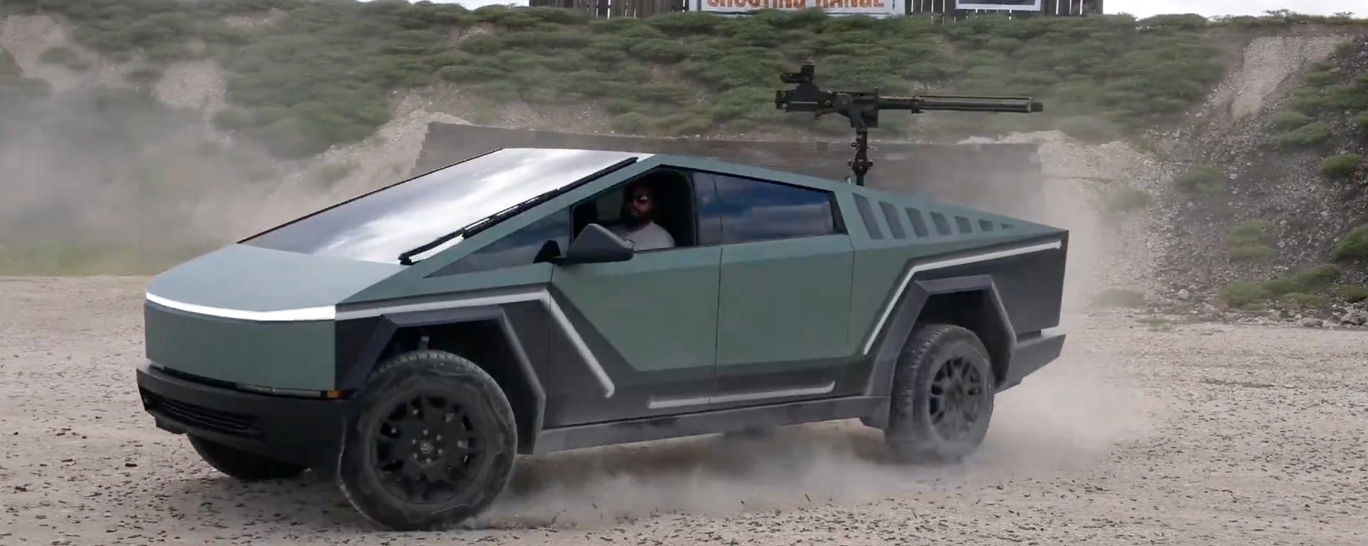 The Cybertruck is already marketed as the perfect Apocolypse machine, capable of handling nearly anything that comes its way. However, there are some more sinister attachments that would make it even more useful in the event of a Zombie uprising, including one that Herrera built that uses an M2 Browning .50 caliber machine gun: