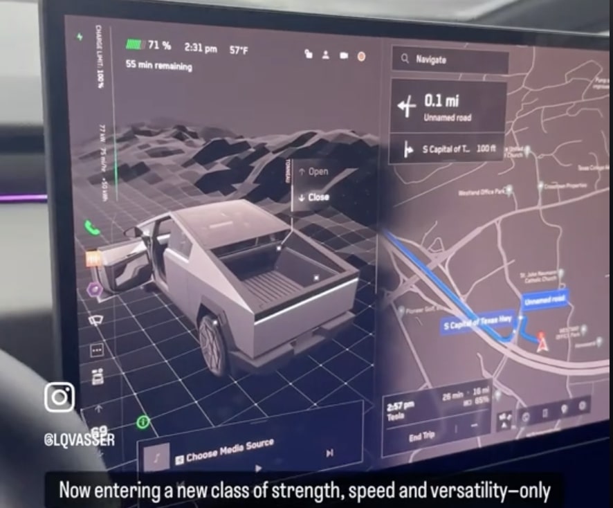 A pretty awesome look at the user interface with the Cybertruck, which features a view of the truck and alerts the driver of which doors are open. It also features tonneau controls from the cabin, which is a nice touch as there are also buttons to control that near the bed.