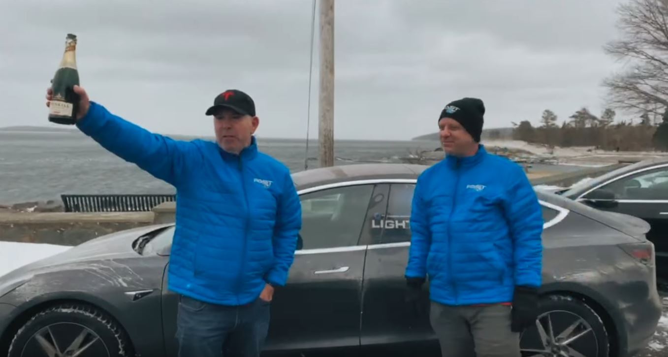 The duo who demonstrated the capability of electric vehicles, particularly the Model 3, and the existing charging networks that support them. The two Tesla owners started their record-setting journey on March 4 and set off from Tsawwassen, British Columbia and ended in Point Pleasant Park in Halifax, Nova Scotia on March 7.